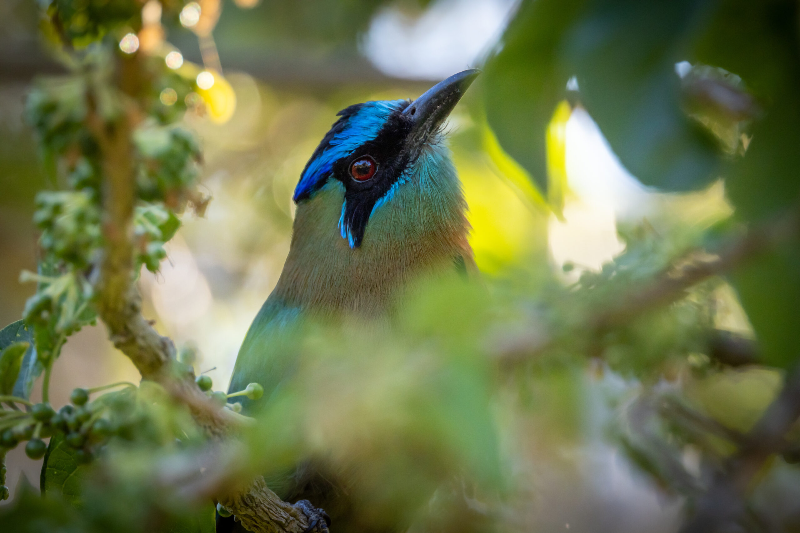 The Lessons Motmot peaking through, checking on the views and ensuring I get his good side.